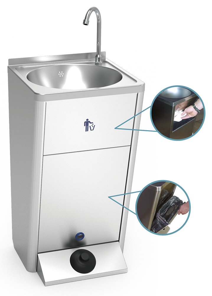 Um lava-mãos de aço inoxidável independente é muito prático porque não requer corrente elétrica, entrada de água ou escoamento. É fácil de montar, as suas rodas e a sua alça traseira permitem um transporte fácil e seguro. A parte frontal é removível, a parte traseira é aberta. Projetado de acordo com os padrões de higiene e segurança. Possui um funcionamento não manual.