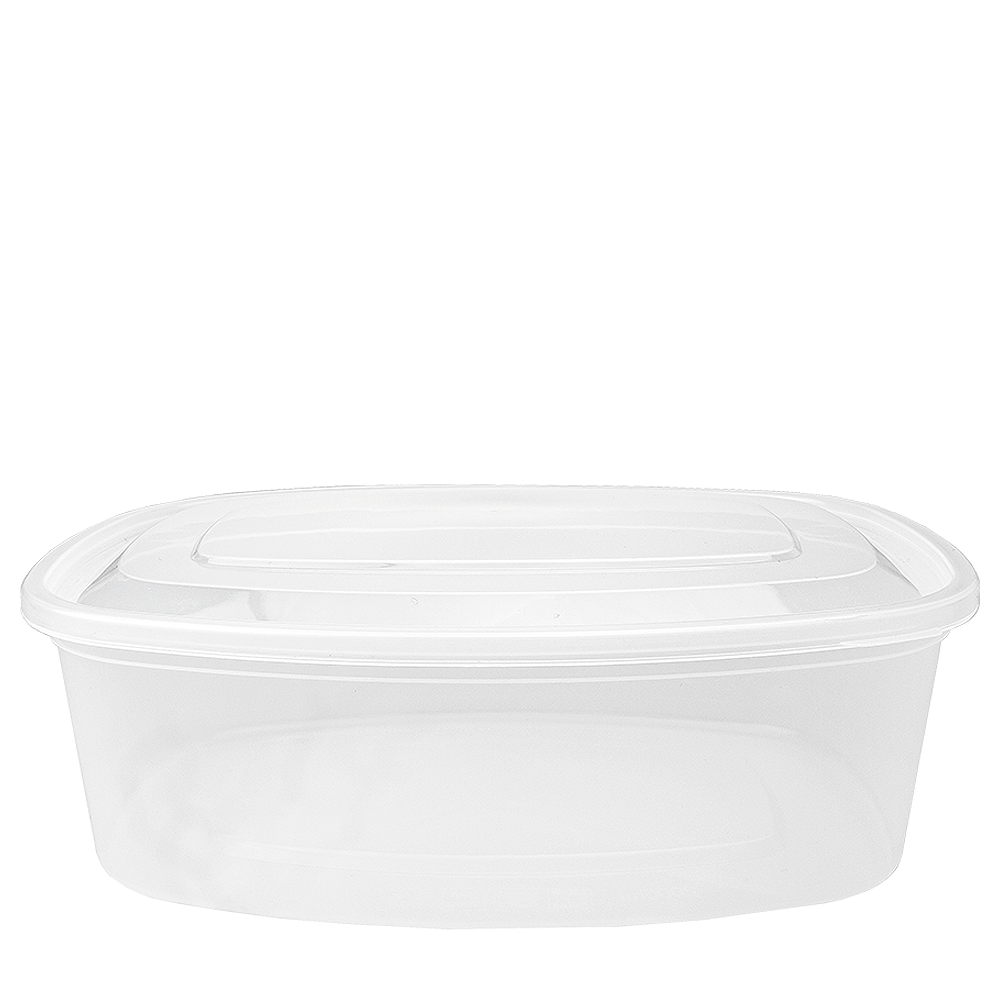 Embalagem PP rígido 2L (2000ml) com tampa incorporada: vedação segura, empilhável e reutilizável. Ideal para líquidos, refeições e expedição diária.