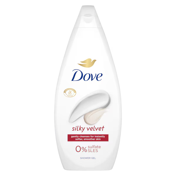 Desfrute de uma pele mais macia e suave ao utilizar o gel de duche Silky Velvet da Dove.