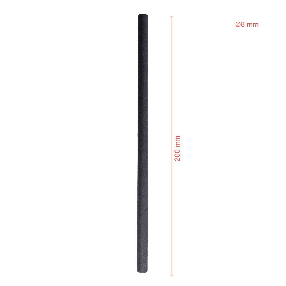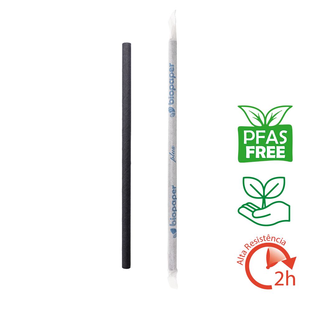 A palhinha reta de papel preta 0,8x20cm (embalagem individual) é biodegradável, elegante e segura. Ideal para cocktails, sumos e refrigerantes. Escolha sustentabilidade com sofisticação! Este produto é livre de PFAS, garantido segurança e qualidade.