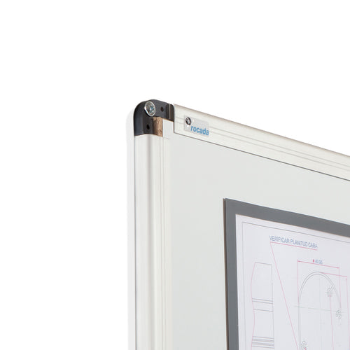 Quadros magnéticos lacados com moldura em alumínio anodizado, acabamento em polímero técnico e fundo em metal.