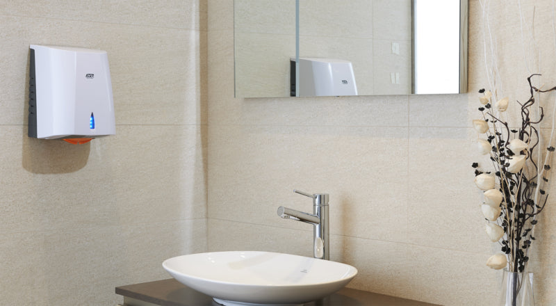 Secador de mãos Sup'Air branco com secagem ultrarrápida e baixo consumo de energia. Projetado para uso intensivo.